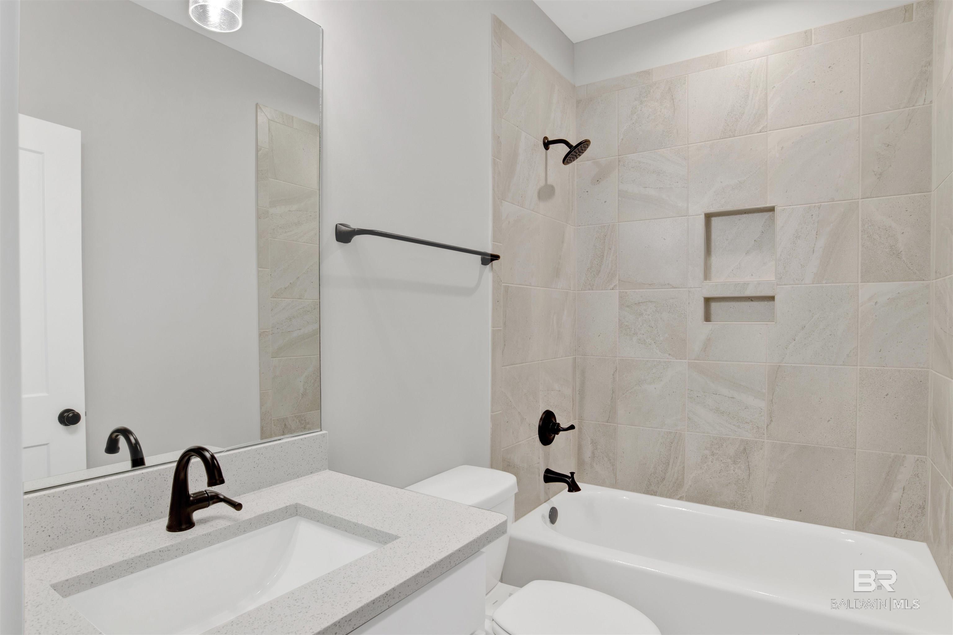 $15,000 Builder Incentive with an acceptable offer! MOVE IN READY! Discover the Serenbe plan by Tower Homes, a beautifully crafted 2-story residence offering 4 bedrooms and 3 baths. The inviting Craftsman exterior opens to a bright foyer and spacious living area highlighted by rich wood flooring, trim accents, and a 42-inch ventless gas fireplace with a wood mantel and shiplap surround. Oversized windows and double doors to the covered patio fill the room with light. The chef's kitchen boasts painted cabinetry, a tile backsplash, upgraded quartz counters, and a generous flat island with a stained base, plus stainless appliances: a gas cooktop, a built-in oven, a dishwasher, and a microwave. A sunlit dining area showcases custom trim. The main-floor primary suite is a serene retreat with hardwoods, an accent trim wall, dual quartz vanities, a soaking tub, a large, tiled shower, a private water closet, and a walk-in closet with custom wood shelving. A guest bedroom and full bath, plus a roomy laundry with storage, complete the first floor. Upstairs, two bedrooms feature ample closets and cozy nooks for desks or reading corners, served by a third full bath with a quartz vanity. Blending craftsmanship and modern comfort, this home delivers style and livability in every detail. Located on Lot 7, Patch Place is a 64-lot subdivision located just off CR 13 at the end of Parker Ln. It is minutes from I-10 and is close to schools, shopping, parks, and more. Gold Fortified, the home includes a 1-yr builder warranty, a 10-yr PWSC structural warranty, and a 1-yr termite bond with Formosan coverage. Ask about the 2-1 buydown option* One or more principals of the selling entity are licensed real estate agents and or Brokers in AL. Buyer to verify all information during due diligence.